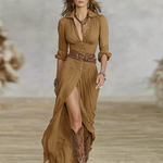 De lange mouwen en de inbegrepen riem omlijsten de figuur subtiel, waardoor een tijdloze look ontstaat die ideaal is voor elke gelegenheid: van een ontspannen dag tot een elegante gebeurtenis.